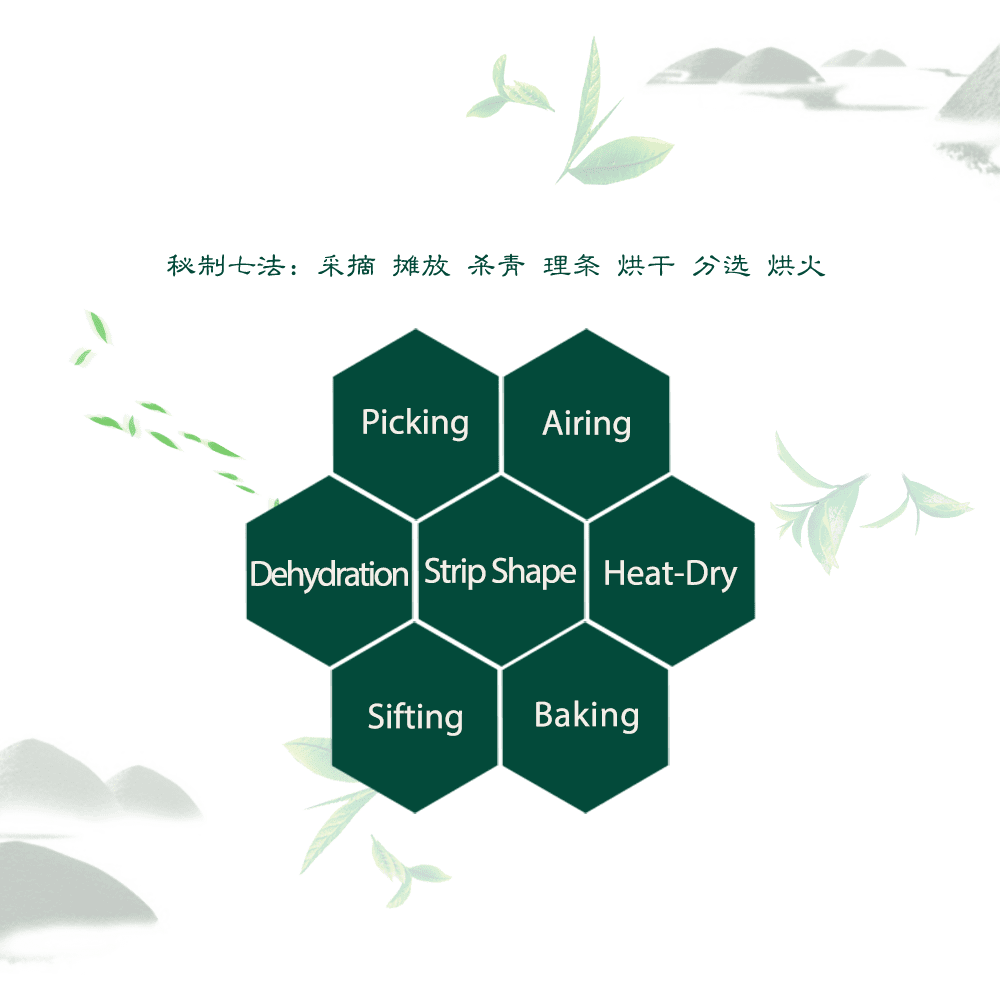 Tian Mu mountain is rated as state-level natural scenic. The continuous peaks of Tian Mu mountain look comely and fascinating. Its elevation of major peak named west tian mu and east Tian Mu were about 1500 meters. Tian Mu mountain always is year-round fog and humid climate. Its lush forests and leaves landing formed ash brown forest soil and humus layer reached to 20cm. The loose and black soil appears its acidifying property. Therefore, all of these features are to be suitable for the growth of fine tea.